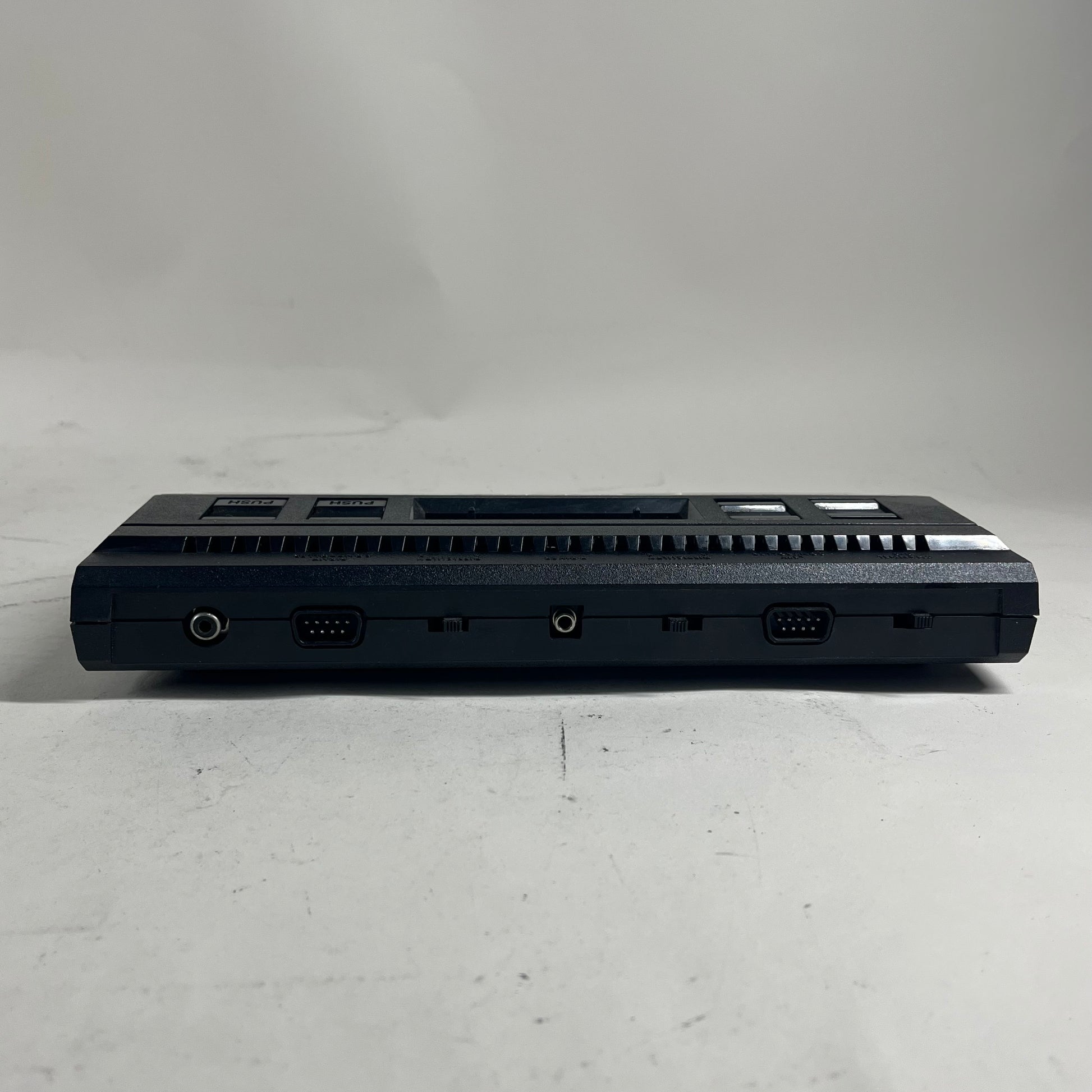 This console is in good cosmetic condition. The top, bottom and sides all have minor, but noticeable, scuffs and wear. Please view our close up photos, as these are taken of the actual item being offered for sale. The ports are in good condition with minor wear. The cartridge slot is in good condition with minimal dust and noticeable wear.